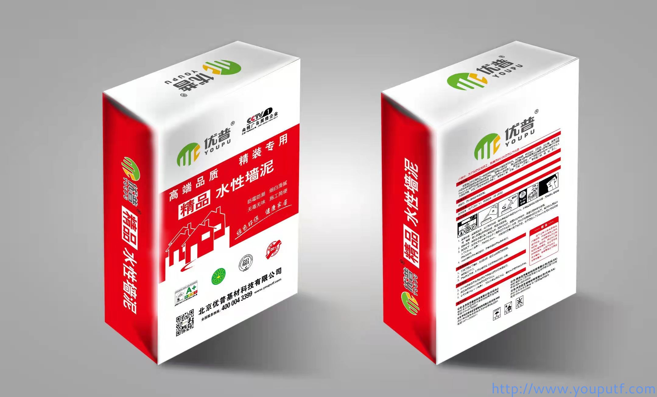 優普精品系列水性墻泥即內墻膩子,是優普公司自主開發研制的第5代刮墻膩子,采用德國技術,綠色環保,歐洲標準,零醛零VOC,通過法國A+認證。
